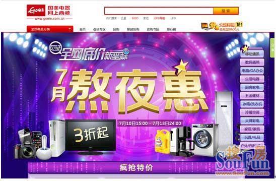 (口碑家电网-2012-7-10) 7月10日—7月13日,国美网上商城www.gome.com.cn为期3天的熬夜惠正式开启。作为下半年首个大规模的促销活动,国美网上商城本次熬夜惠以“见证全网低价新坐标”为主题,全场商品3折起,iPhone4S手机4699元、尼康D90单反套机6450元、联想G480笔记本电脑3699元、海信冰箱1199元等,优惠力度堪称冠绝全网。
