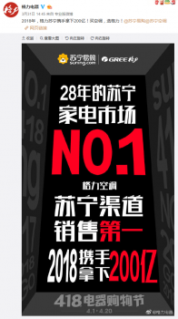 在对市场的准确预判下,苏宁早在年初就与一线品牌商进行了大单采购和包销定制,针对全年大促节点打造爆款机型,密集首发新品。418历来是电商争夺上半年市场份额的重大节点,苏宁集结了10000多个品牌参与,涵盖了格力、美的、海尔、创维等国内外家电的各大主流品牌。