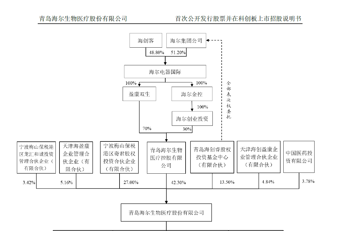 海尔生物招股书称,“控股股东青岛海尔生物医疗控股有限公司(下称“海尔生物医疗控股”)及公司实际控制人海尔集团公司均作为投资型平台公司,自身未实际开展业务,与发行人不存在同业竞争。”