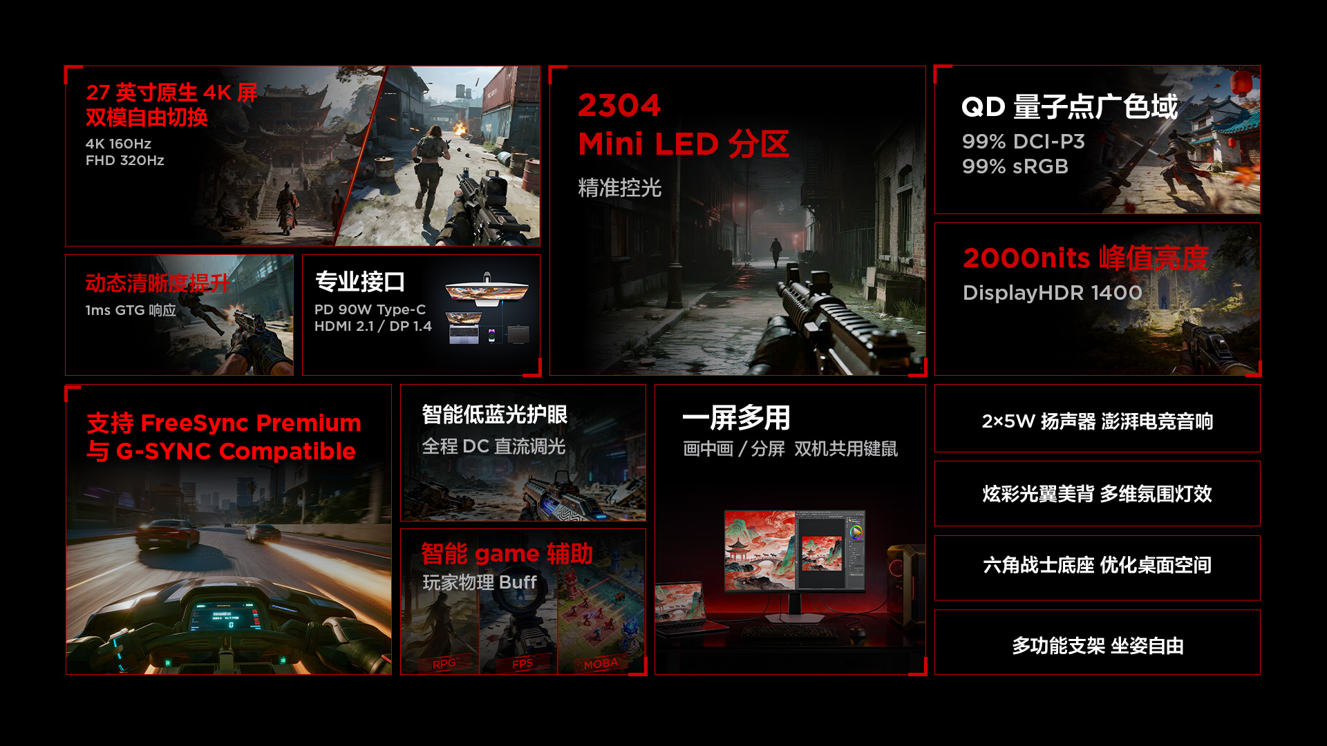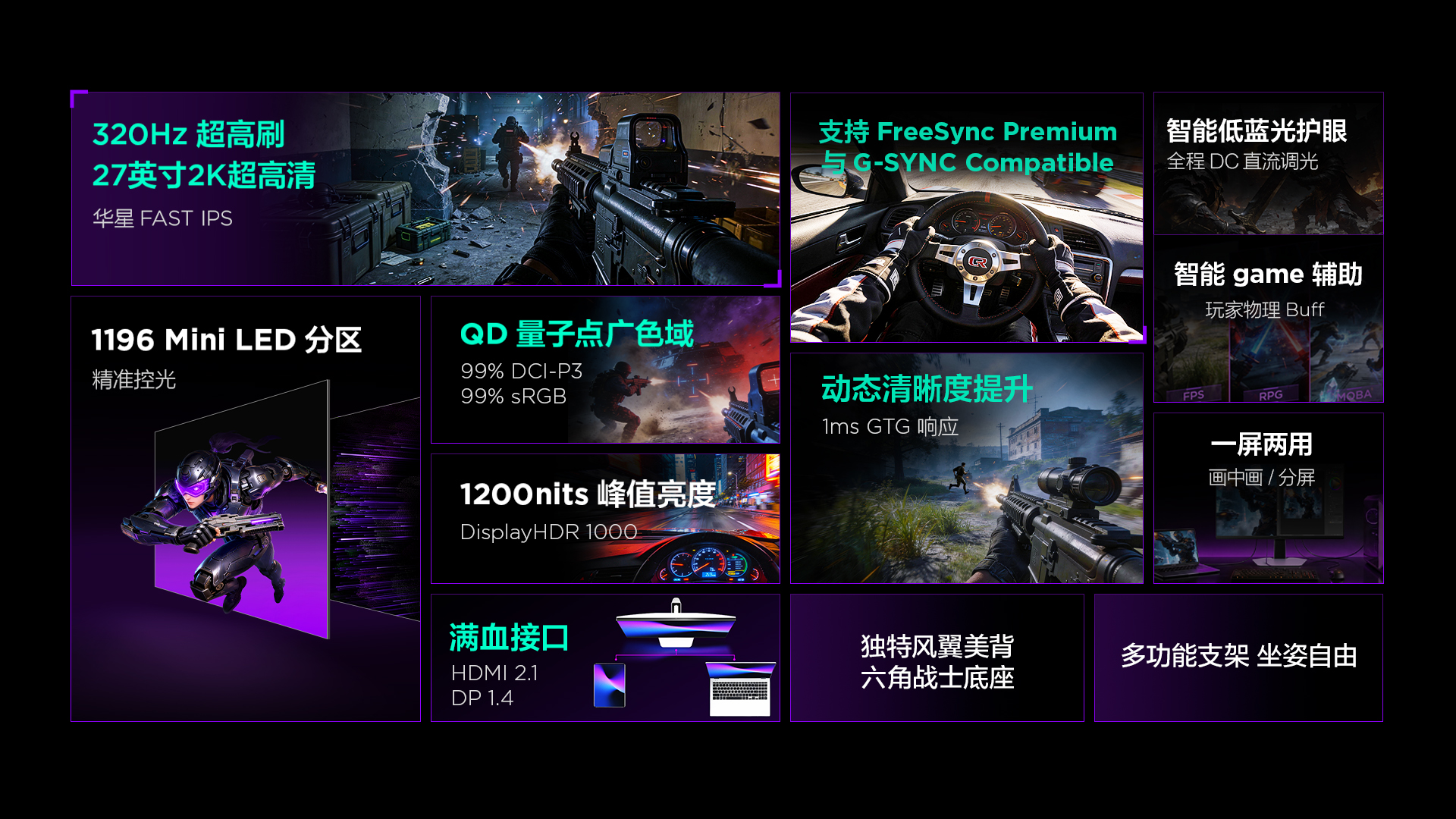 这种妥协早已渗透到玩家的实际体验中:为了感受《黑神话:悟空》的细腻场景纹理,入手4K高色域屏,却在畅玩《CS2》时遭遇准星拖影、跟手度不足的竞技阻碍;为了追求极致竞技体验选择320Hz高刷屏,却在观看《赛博朋克2077》等3A大作时,忍受画面模糊、细节缺失的观感落差。这几乎是所有电竞玩家都曾经历的两难——要么牺牲画质换流畅,要么放弃流畅求画质。而玩家真正的需求,从来都不是“所有功能及格就行”,而是“核心需求做到极致”。